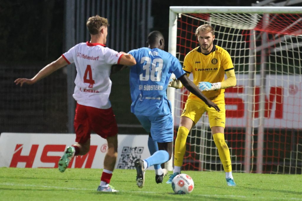 Auch der sich wieselflink in die Offensive einschaltende Komlan Yves Eugene Ihou eroberte im Nachsetzen den Ball und verfehlte nur knapp sein Ziel (84.). „Wir waren einfach nicht zwingend genug“, so das Resümee des Südsterncoaches.